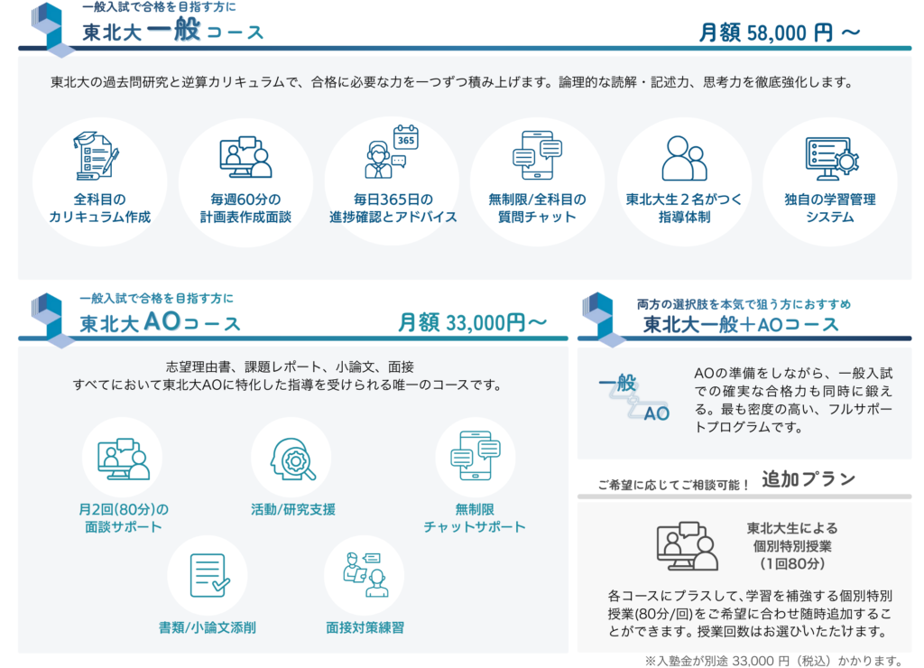 一般/AO/併願型を柔軟に組み合わせながら、東北大合格に必要な実力をつけることができます。